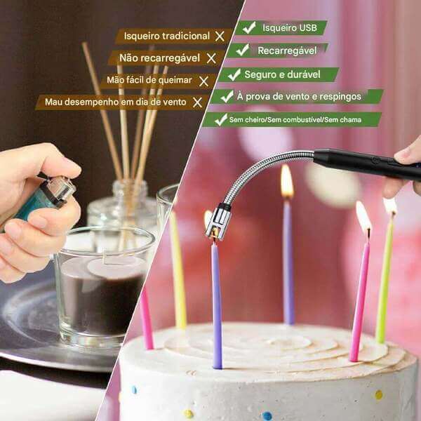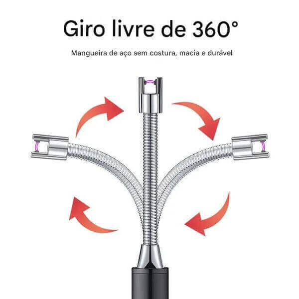 Com tecnologia de plasma sem chamas e design à prova de vento, este acendedor garante acendimento seguro em qualquer ambiente, seja em casa ou ao ar livre. Sua cabeça flexível com rotação de 360° permite acender em qualquer ângulo com facilidade. Além disso, é recarregável via USB, tornando-se uma opção ecológica e econômica.