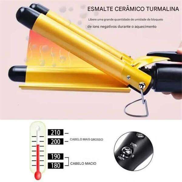 Modelador de Cachos Tri-Ondas 22mm com Controle de Temperatura