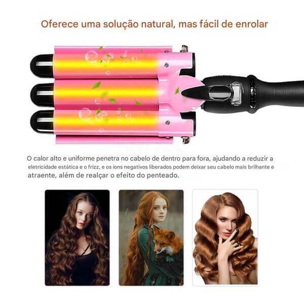 O Modelador de Cabelo Tri-Ondas é a ferramenta ideal para criar cachos definidos e ondas naturais de forma rápida e prática. Com um design moderno e funcional, ele garante resultados de salão sem sair de casa.