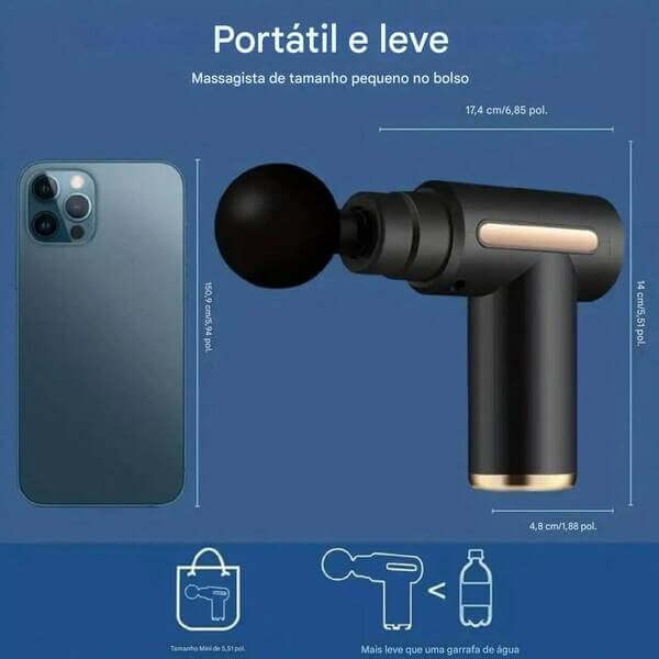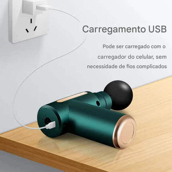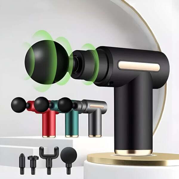 Pistola de Massagem e Relaxamento Elétrica com 6 Velocidades e 4 Cabeças de Massagem – Recarregável USB