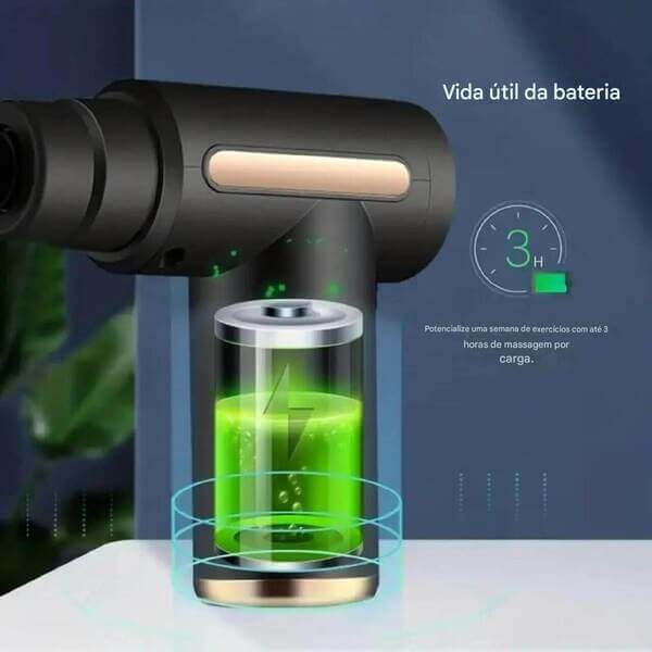 Bateria de Longa Duração: Capacidade de 1800mAh, com autonomia de 4 a 6 horas e tempo de carregamento de apenas 2,5 a 3 horas.